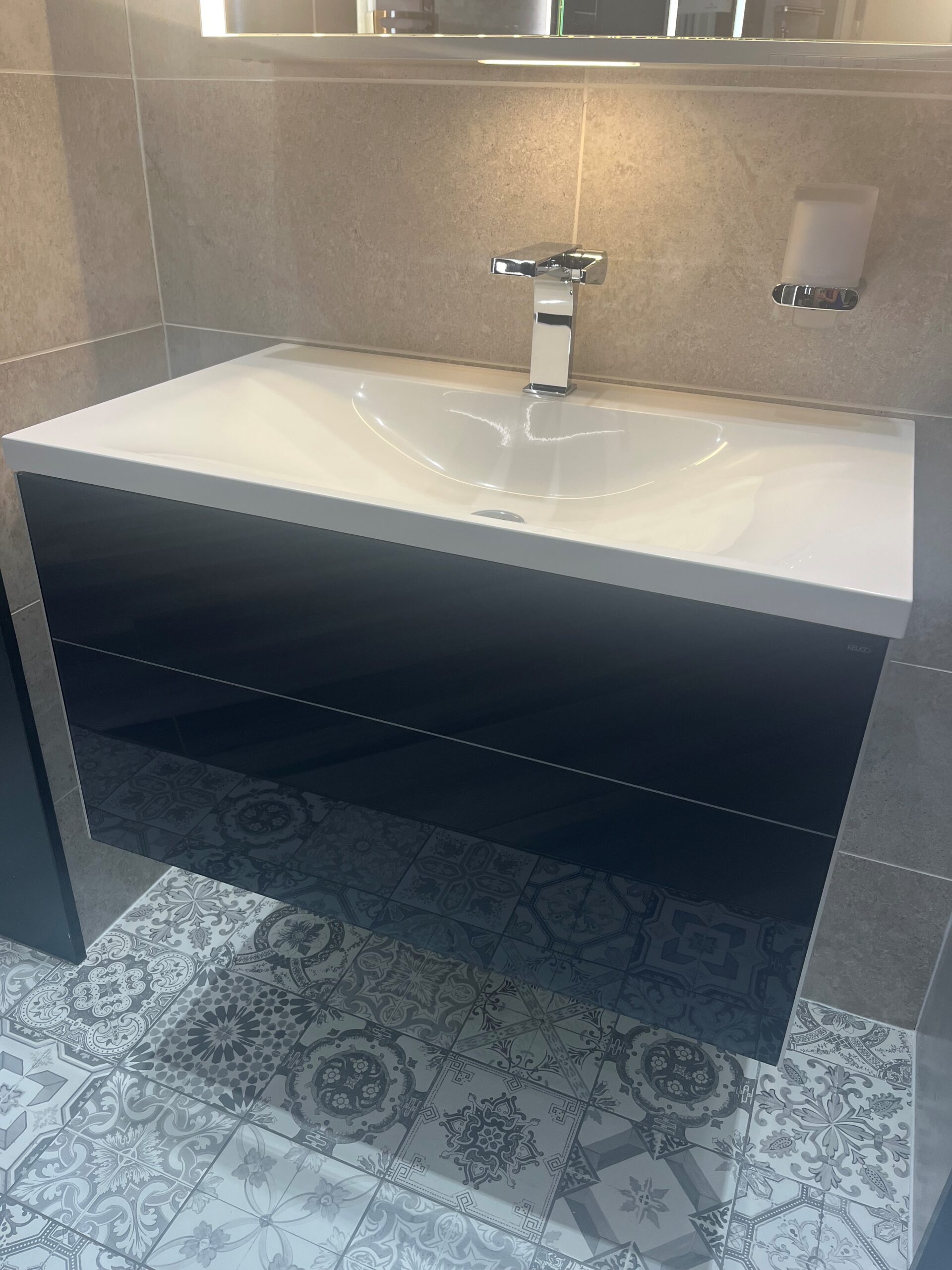 Keuco Royal Reflex 800 cast mineral washbasin and 1 drawer vanity in anthracite.